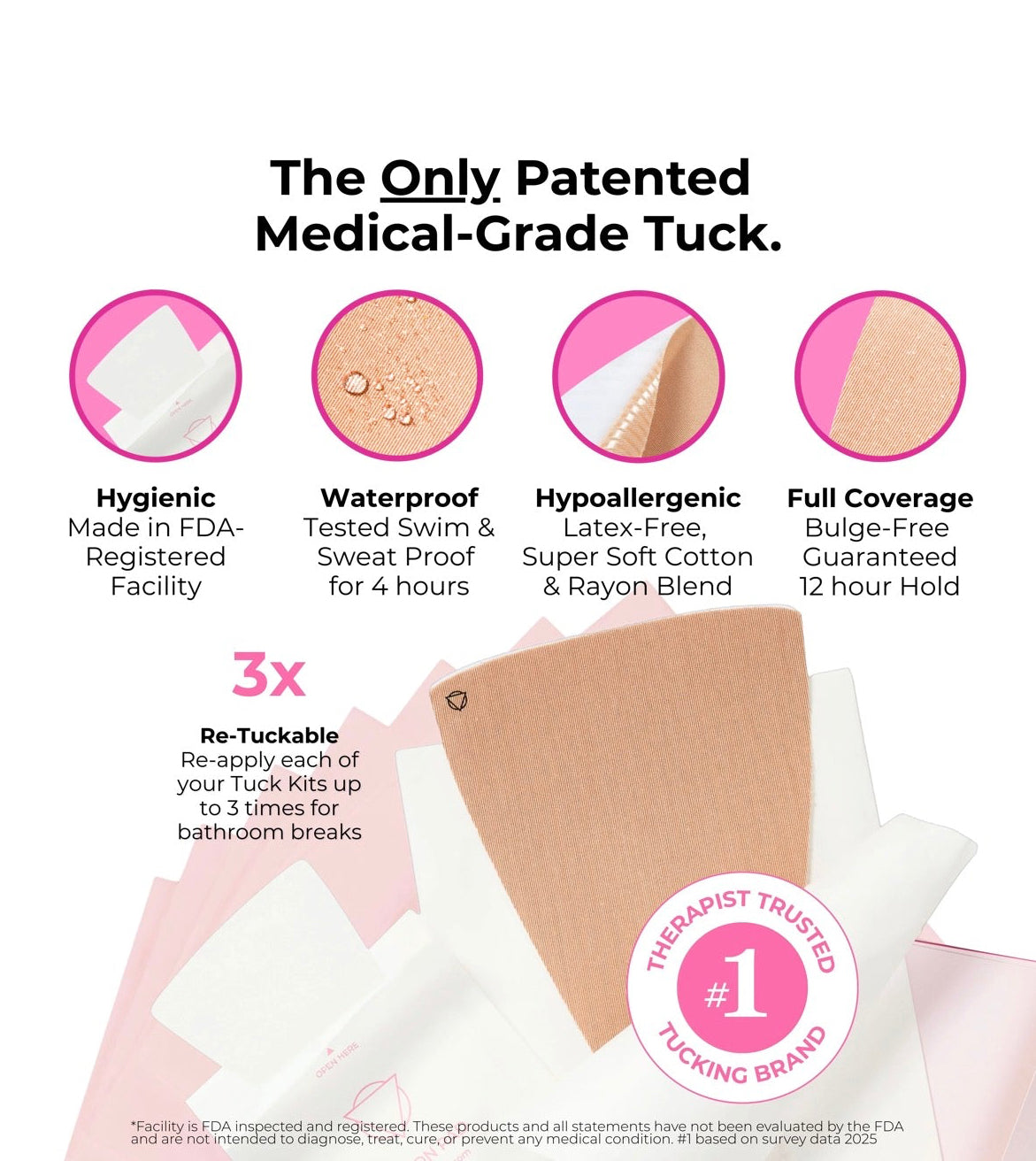 Stay Tucked twice as secure with Tuck Kit 2, the latest all-in-one tucking product from Unclockable. Made in an FDA-registered facility, Tuck Kit 2 provides a 2X more secure tuck that's up for life's adventures. 👙🤿Swim-Proof 🏋️ Gym-Proof 🏳️⚧️ Life-Proof. Ultra breathable pre-cut rayon & a new 40% larger & more shapely cotton pad keep you clean, comfortable, and confidently tucked.